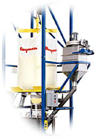 tube télescopique TELE-TUBETM. Une fois connecté à la manchette du sac, le cordon de serrage peut être libéré, ce qui permet au matériau de tomber librement dans la trémie rapidement et sans poussière.